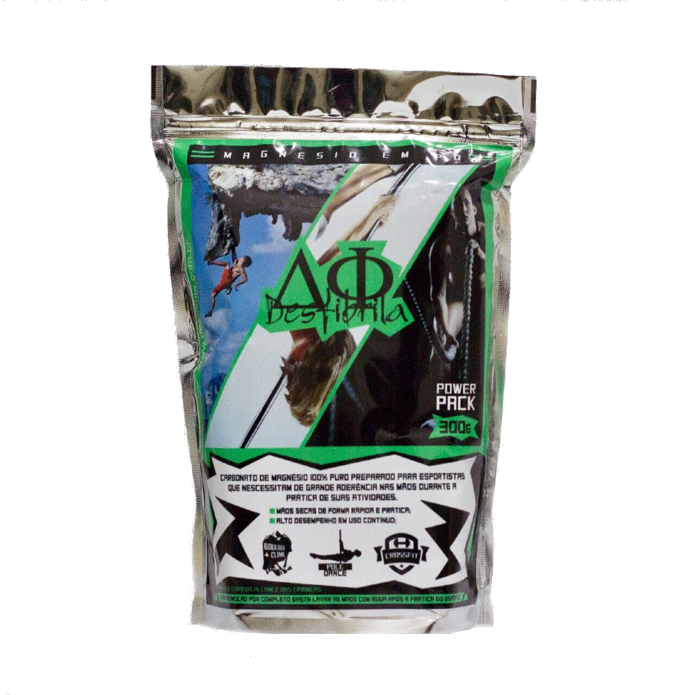 - Power Pack Desfibrila®, utilizado na pratica de Escalada, Crossfit, Pole Dance, Calistenia ou qualquer esporte que dependa de uma maneira pratica e rápida para utilizar o magnésio em pó Desfibrila®, além de ser revestido com tecido especial para melhor proveito do magnésio, pois evita espalhar o mesmo para fora do Porta Magnésio.